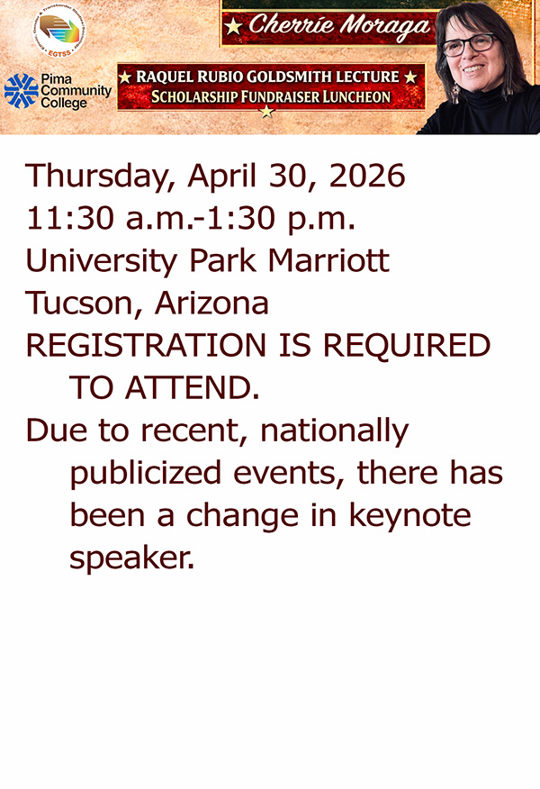 Cherrie Moraga Lecture at the Raquel Rubio Goldsmith Lecture/Scholarship Fundraiser Luncheon on Thursday, April 30, from 11:30a.m. to 1:30p.m. Note change in keynote speaker. Registration is required to attend. Read More…