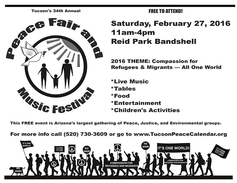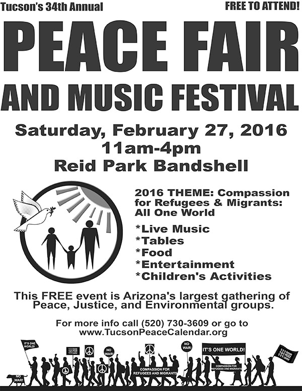 The Peace Fair and Music Festival will take place on February 27. You can help us promote this great event. Print up some flyers and spread the word!