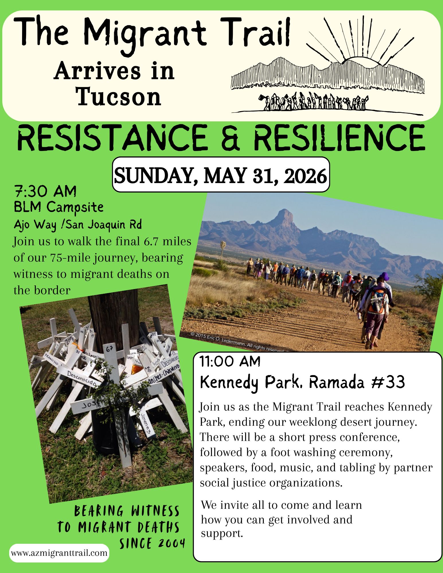 Join us to walk the final 6.7 miles of our 75-mile journey, bearing witness to migrant deaths on the border.
