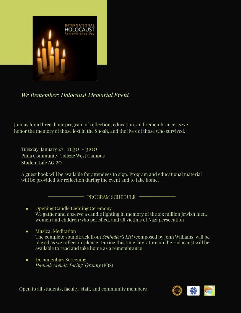 We Remember: Holocaust Memorial Event at West Campus of Pima Community College
