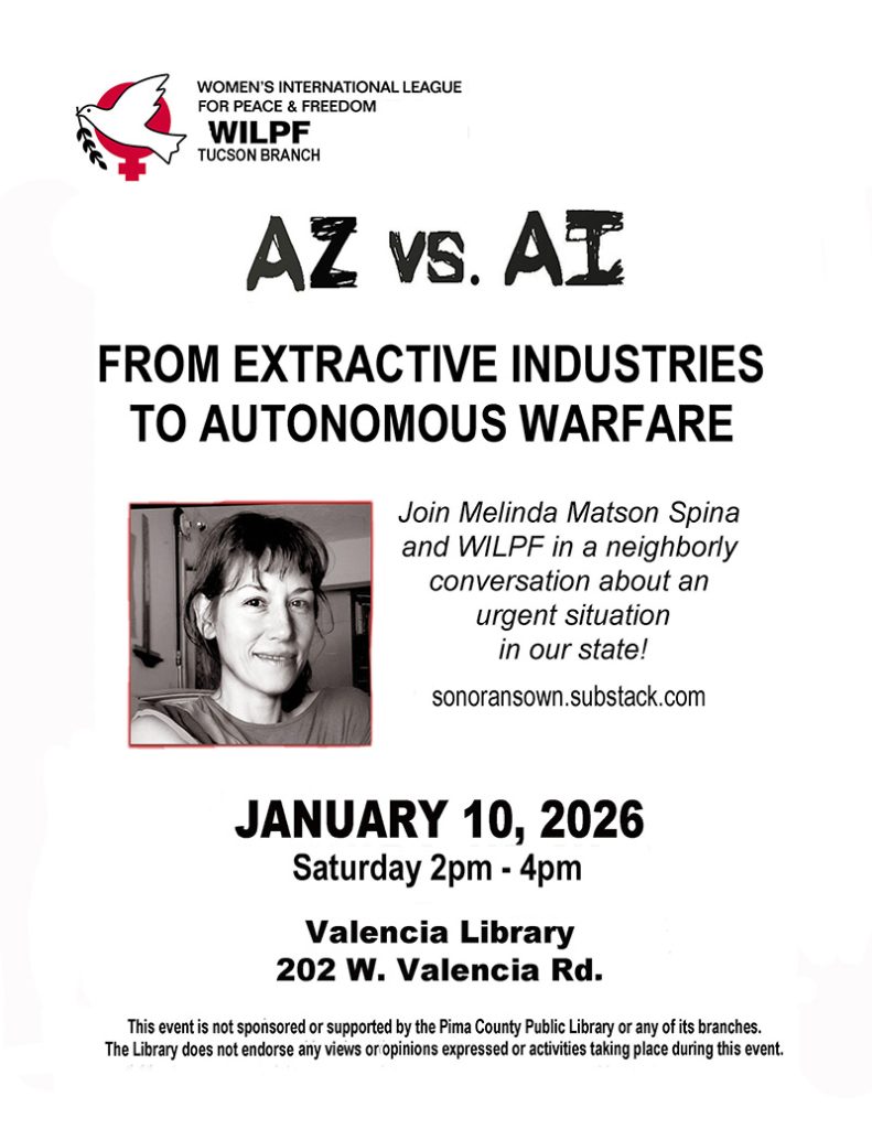 Women’s International League for Peace & Freedom (WILPF) Tucson Branch presents AZ vs. AI — From Extractive Industries to Autonomous Warfare