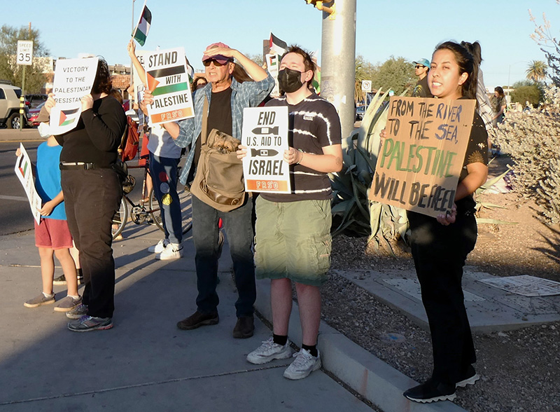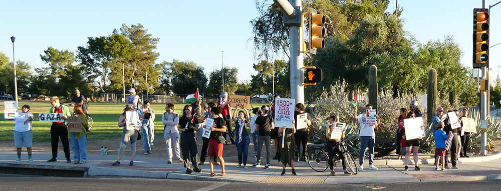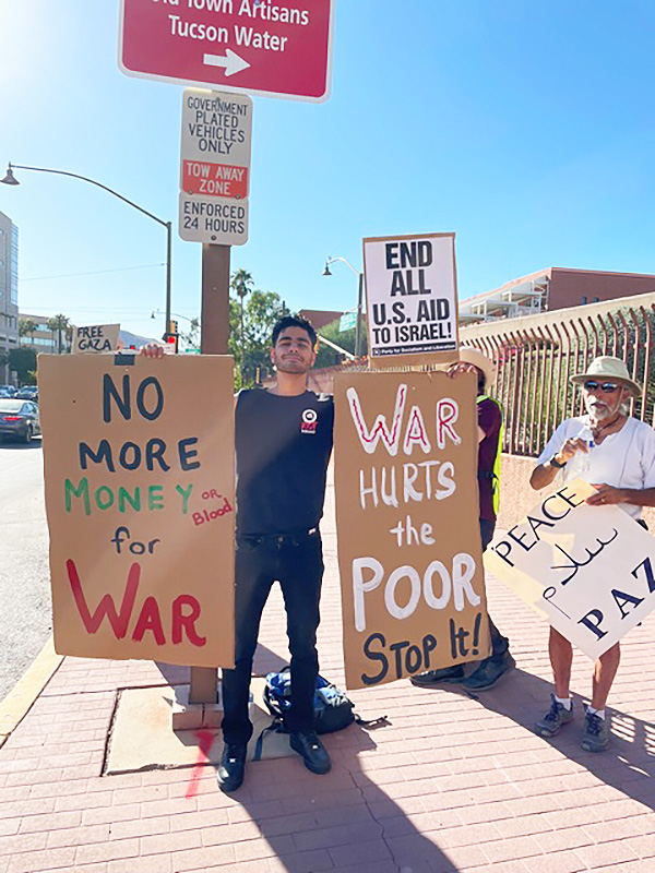 Photo from Tucson Peace Center sponsored Community Rally for Palestine on 10/9/23; by Mary DeCampPhoto from Tucson Peace Center sponsored Community Rally for Palestine on 10/9/23; by Mary DeCampPhoto from Tucson Peace Center sponsored Community Rally for Palestine on 10/9/23; by Mary DeCampPhoto from Tucson Peace Center sponsored Community Rally for Palestine on 10/9/23; by Mary DeCampPhoto from Tucson Anti-War Coalition Demonstration on October 15, 2023; by Richard FridenaPhoto from Tucson Anti-War Coalition Demonstration on October 15, 2023; by Richard FridenaPhoto from Tucson Anti-War Coalition Demonstration on October 15, 2023; by Richard FridenaPhoto from Tucson Anti-War Coalition Demonstration on October 15, 2023; by Richard Fridena