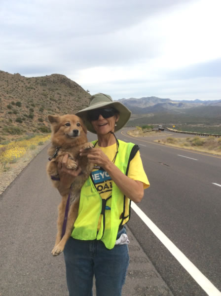 Mary and Birdie in Payson, AZOn Monday, April 14, we heard from Mary DeCamp on The Great Climate March. She says, “Climate March is GREAT — we are in Payson and they are making a really big deal of our visit — even meeting w/Mayor & Council and getting a Boy Scout and Police Escort into town.” We’ll keep you posted on her progress and the progress of this historic march for climate justice!